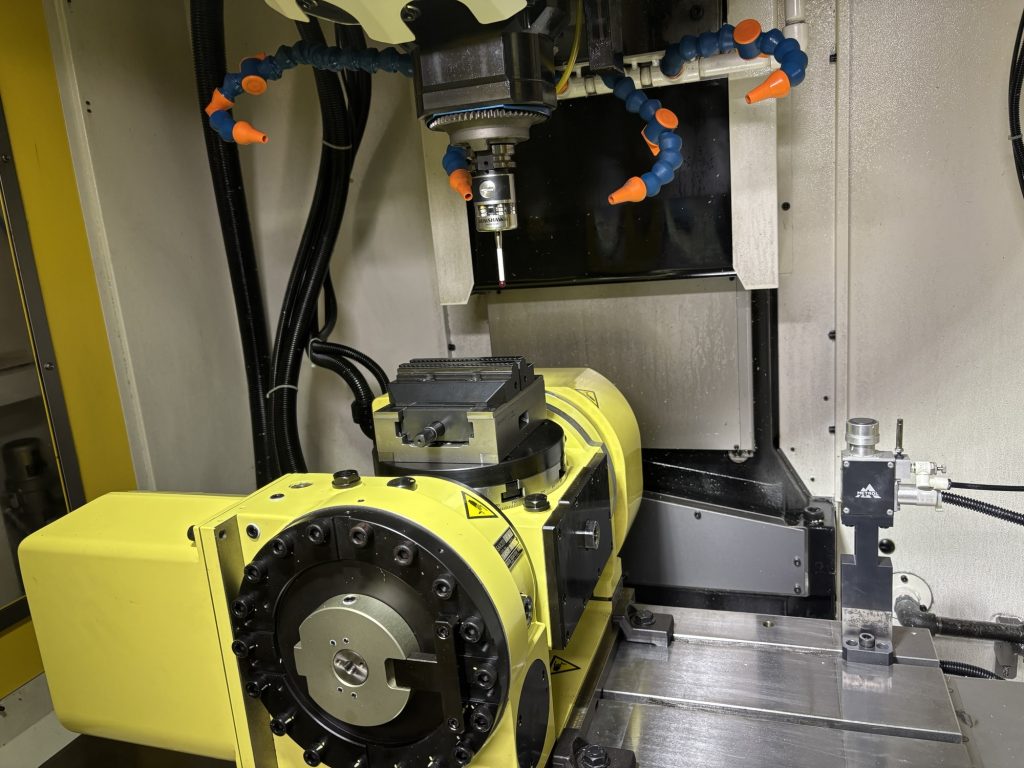機械メーカーに来てもらい、5軸マシニングの調整をしました。